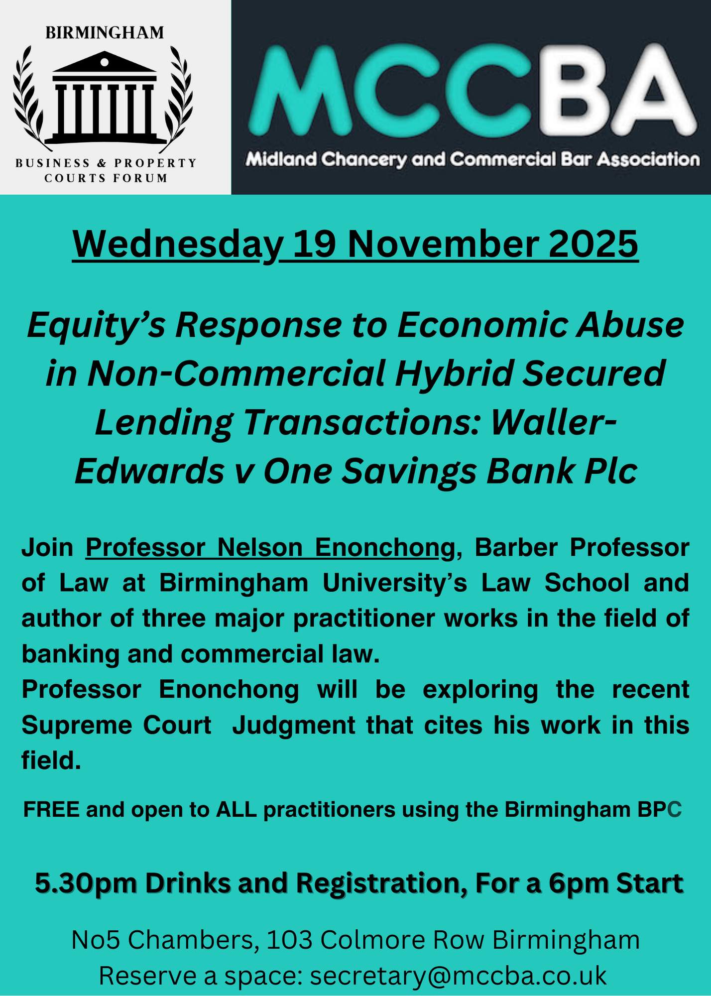 Venue: No5 Barristers' Chambers, 103 Colmore Row, Birmingham B3 3AG
